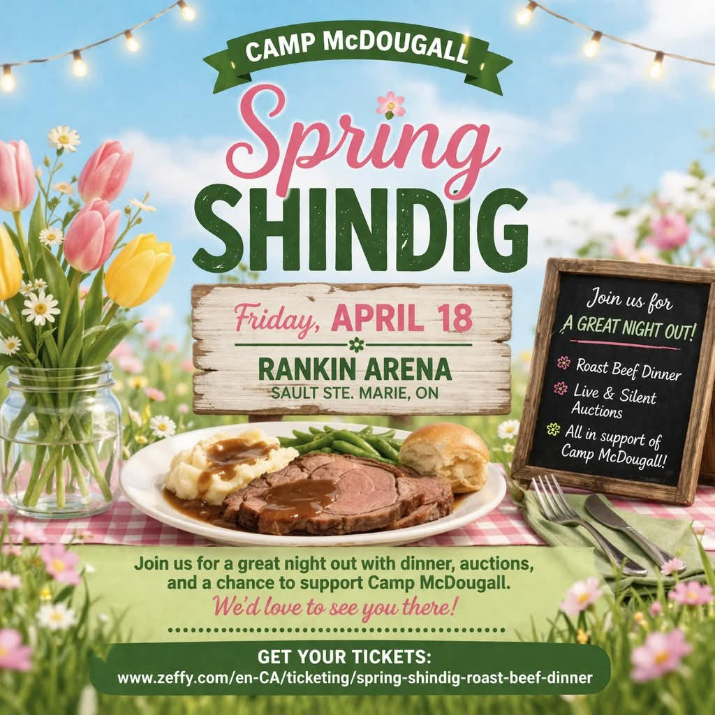 Join us for the Spring Shindig Roast Beef Dinner, where you’ll enjoy a hearty meal while supporting Camp McDougall’s outdoor programs—programs that help children build self-esteem, acceptance, and friendship in a safe, Christian community.