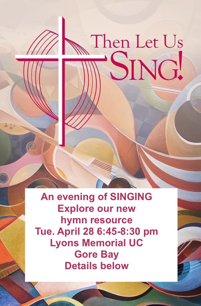 Making a Joyful Noise Together: Exploring Then Let Us Sing April 28 @ 6:45 pm - 8:30 pm Lyons Memorial United Church 17 Meredith St., Gore Bay, Ontario, Canada For everyone who sings or listens in worship here’s a chance to hear and sing songs […] Free